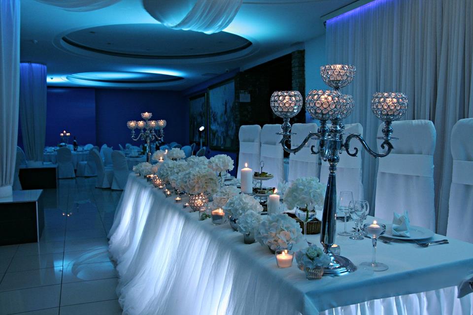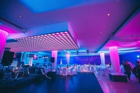 Prekrasne zavjese, pozlaćeni lusteri, disco kugla, LED integrirana rasvjeta iza mladenačkog stola, direktna veza s barom i ulaznim holom,